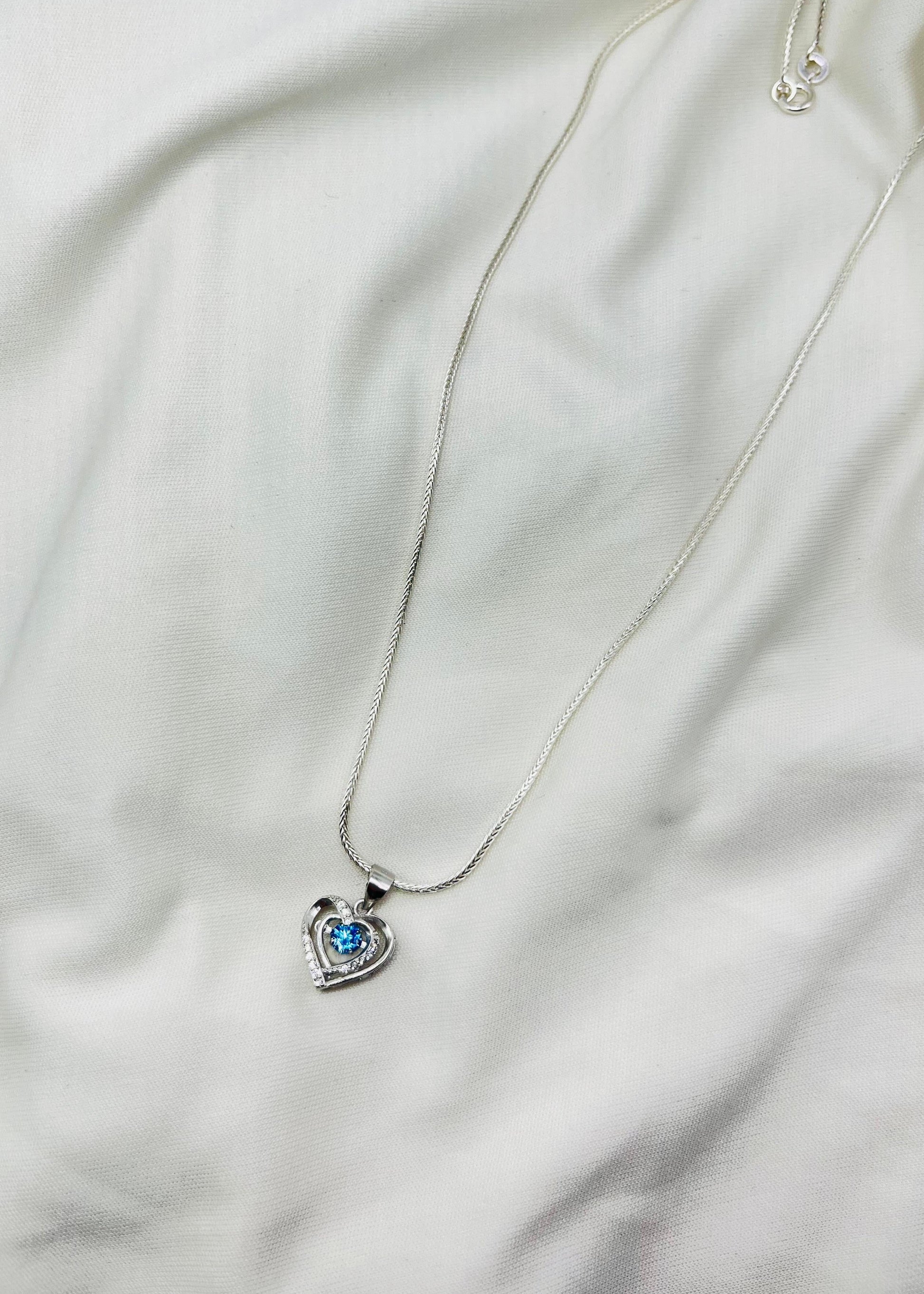 A graceful blend of silver and ocean-blue brilliance, symbolising calm and depth of emotion. Perfect for those who carry serenity and love close to their heart.